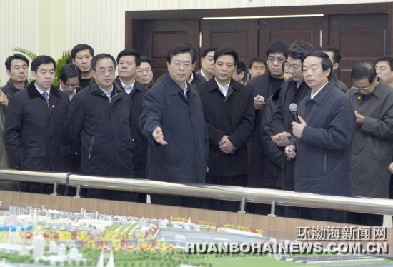 中共中央政治局委员、国务院副总理张德江(中)在省市领导陪同下到曹妃甸工业区视察. 本报记者 力平 摄