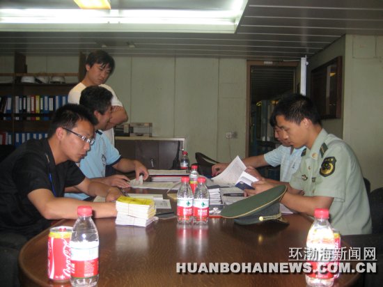 曹妃甸边检站官兵在锚地为河北天才轮办理入境边防检查手续