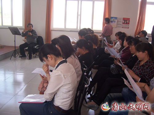 刘梦忠同志正在排演节目