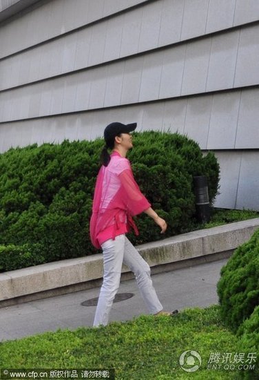 - 李湘红蓝潮装扮嫩 抱胸而行“富态十足”