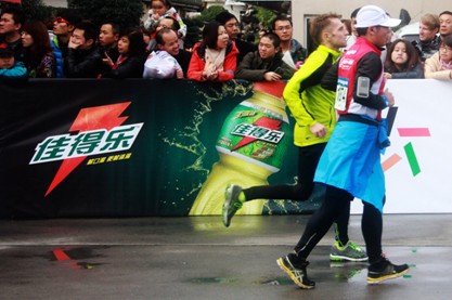 除了提供补给外,组委会还在比赛起点、终点设置了佳得乐充气人偶,不时的与观众和参赛者互动、留影;同时赛事工作人员还为最先到达终点的前十位半程和全程马拉松选手送上了保温毯和佳得乐饮料,以保证运动员的能量补充。