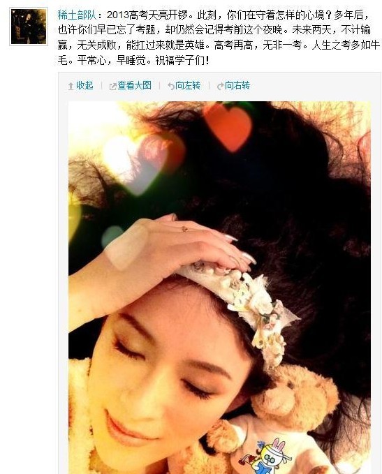 章子怡晒美照问候考生