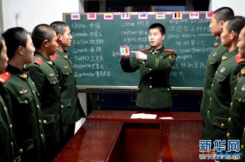 曹妃甸边防检查站监护中队担负着对靠泊各码头外籍船舶的监护任务,每天进出港的外国轮船均在几十艘以上,执勤官兵们利用春节假期相对闲暇时节,集中学习业务知识、识别和熟悉世界各个国家的国旗和英文名称,为执勤提供更好的帮助。(
