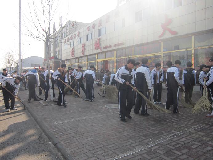 活动中,我校青年学生积极动手、快乐参与。他们发扬不怕累不怕脏、勇于奉献的志愿服务精神,扫地、捡垃圾、清除路边张贴的违法广告、清除卫生死角。经过我校师生们的辛勤劳动,整个大街变得既干净又整洁,同学们热心公益、文明礼貌的表现得到了沿途居民和行人的大力赞扬。