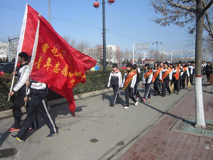 3月5日是全国 “学雷锋纪念日” 为培养我校青年学生的雷锋精神,增强环保意识,3月5日上午,校团委组织我校150余名学生开展“学雷锋,清扫大街”和“交通协管” 志愿服务活动。来自13春机械1班、13春机械2班、13春自动化1班、13春自动化2班、13春会计班和13春物流班的学生在班主任老师的带领下,在垦丰大街中段进行卫生清扫、违法广告清除活动。