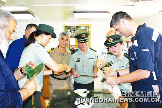 与外国船员共迎端午(图)