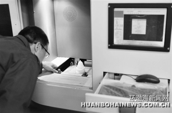 3D打印前,专家在对打印物体进行三维扫描。